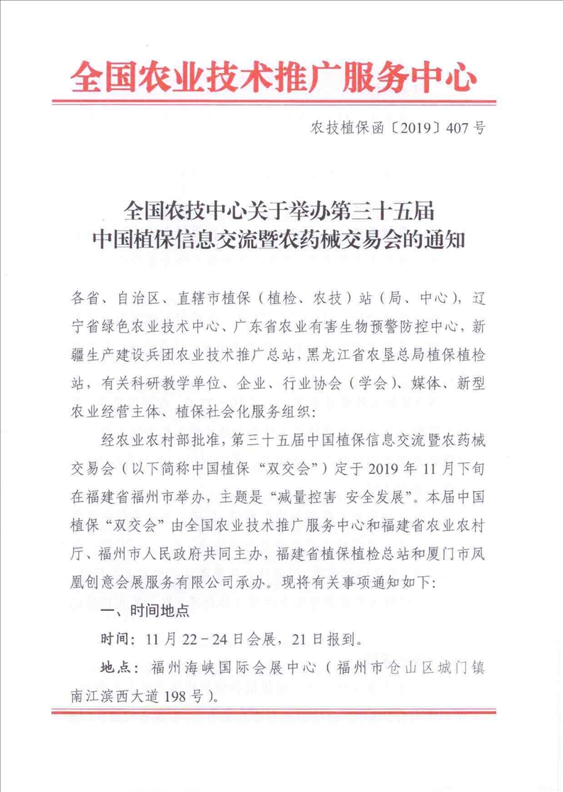 全国农技中心关于举办第三十五届中国植保信息交流暨农药械交易会的通知