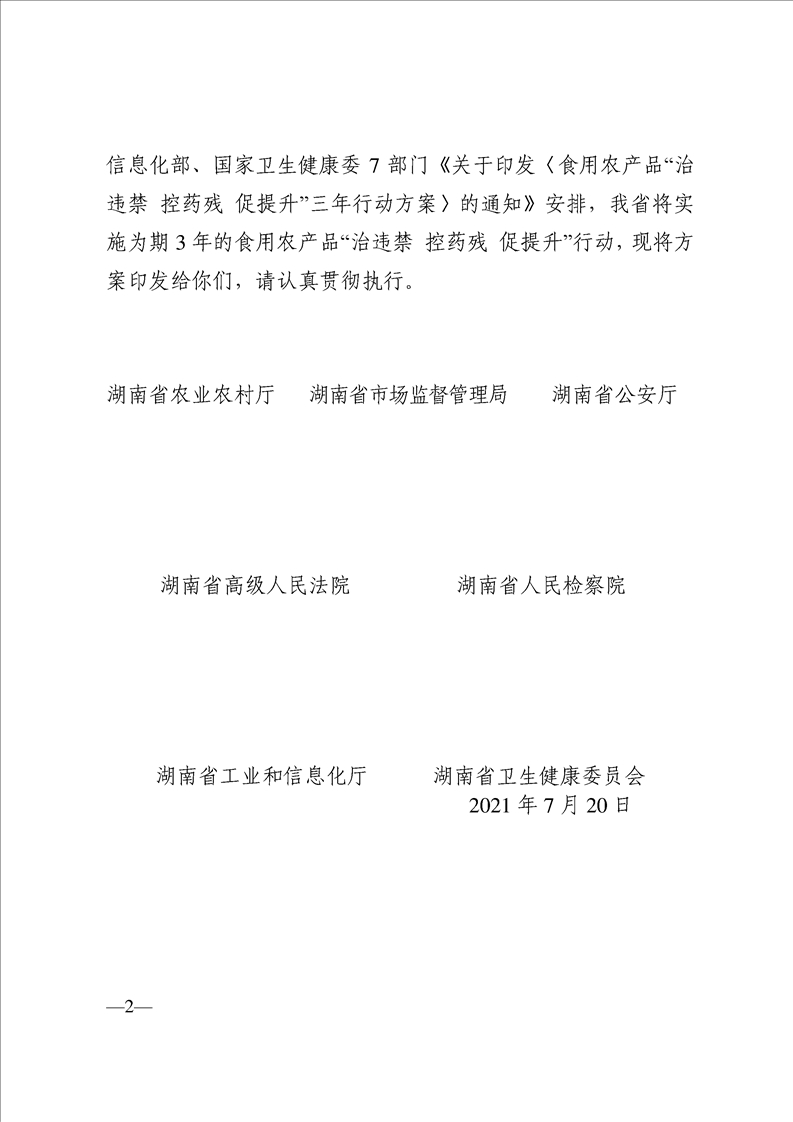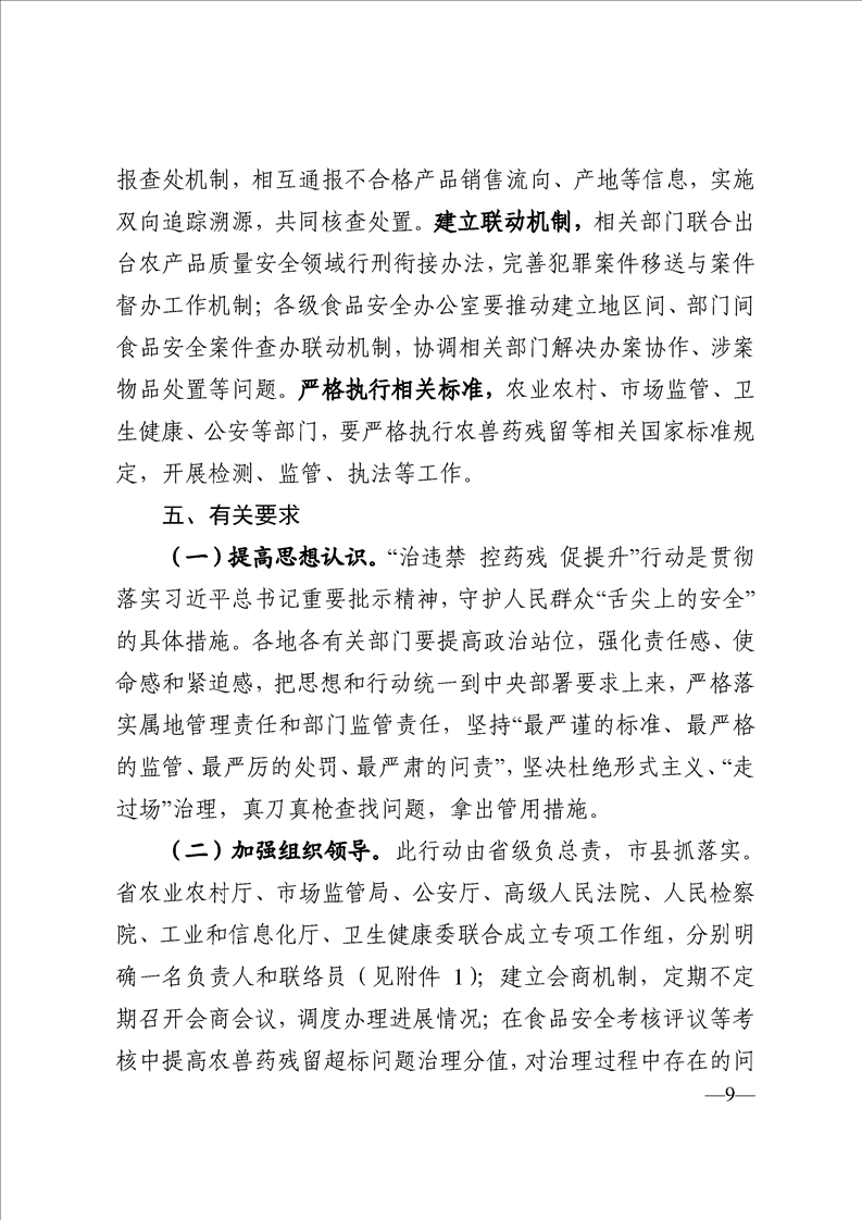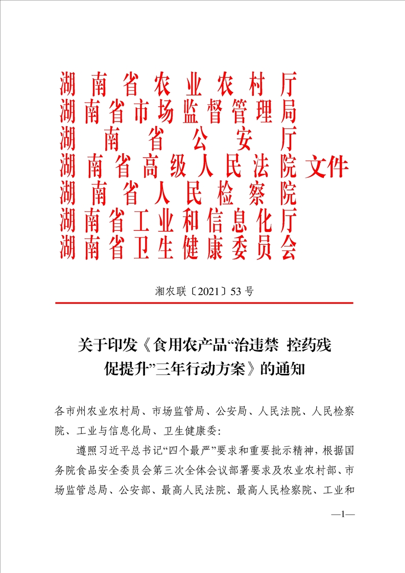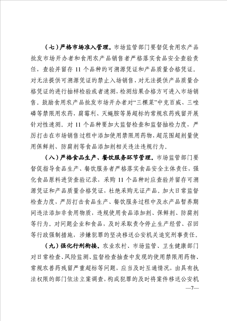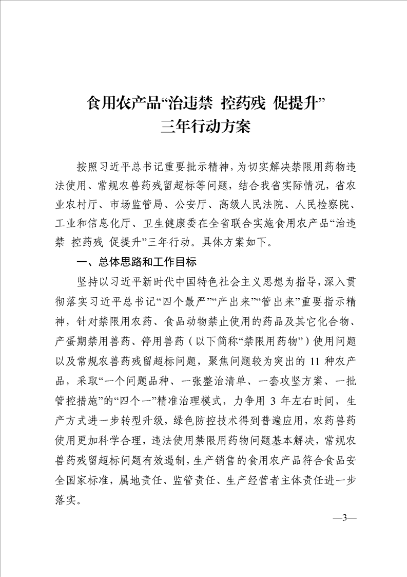 《关于印发《食用农产品“治违禁控药残促提升“三年行动方案》的通知》