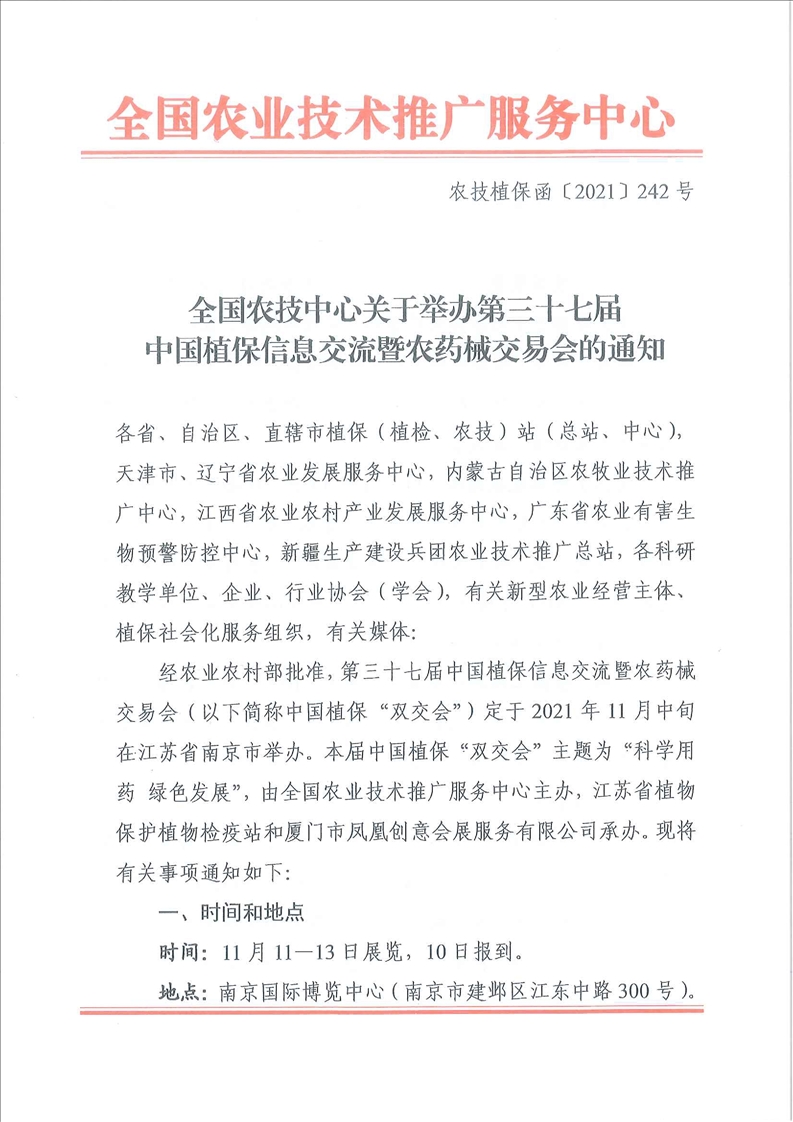 全国农技中心关于举办第三十七届中国植保信息交流暨农药械交易会的通知