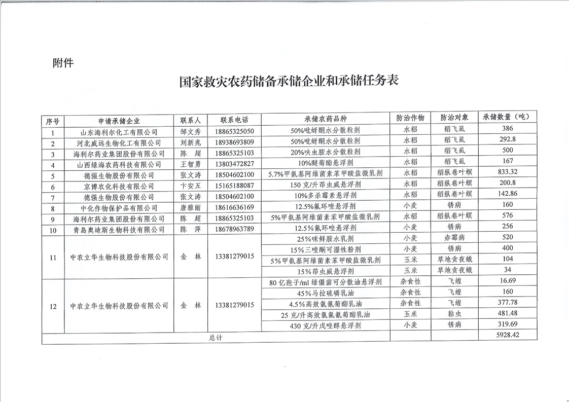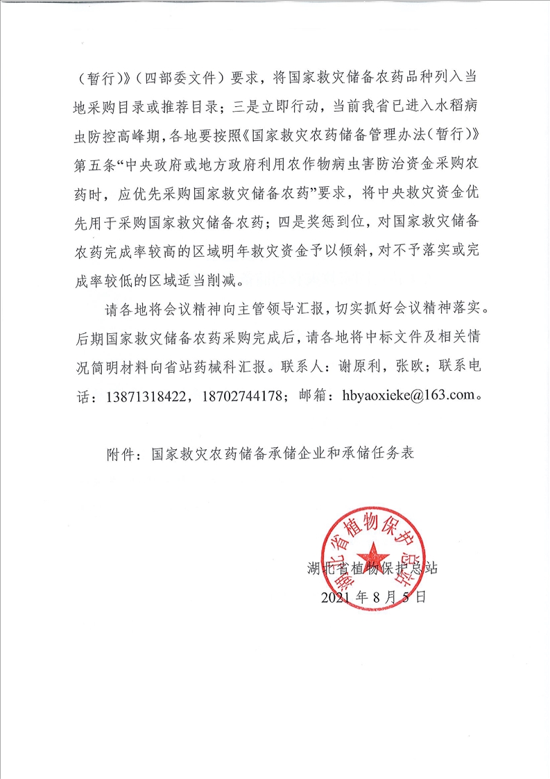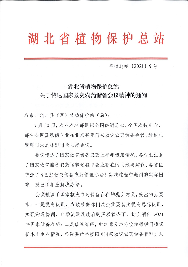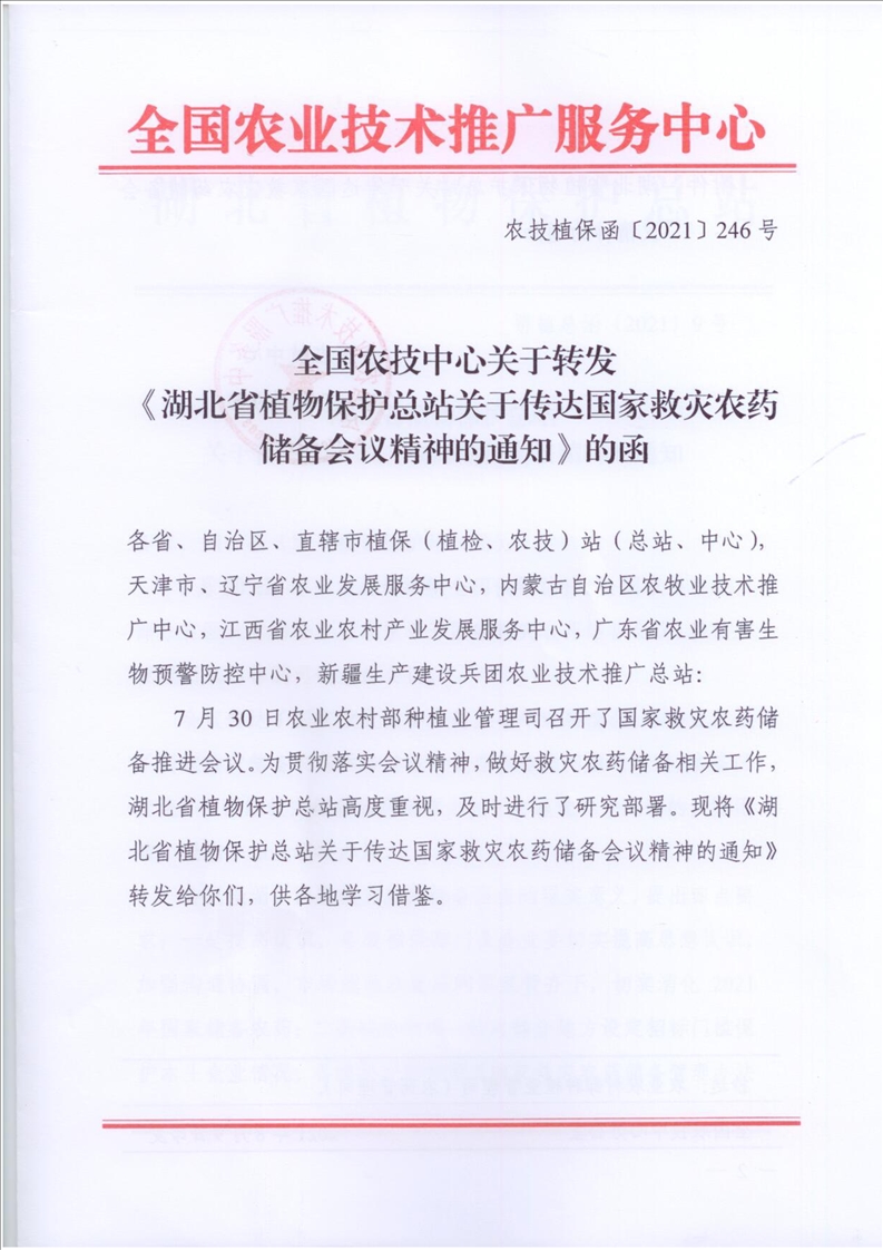 全国农技中心关于转发《湖北省植物保护总站关于传达国家救灾农药储备会议精神的通知》的函