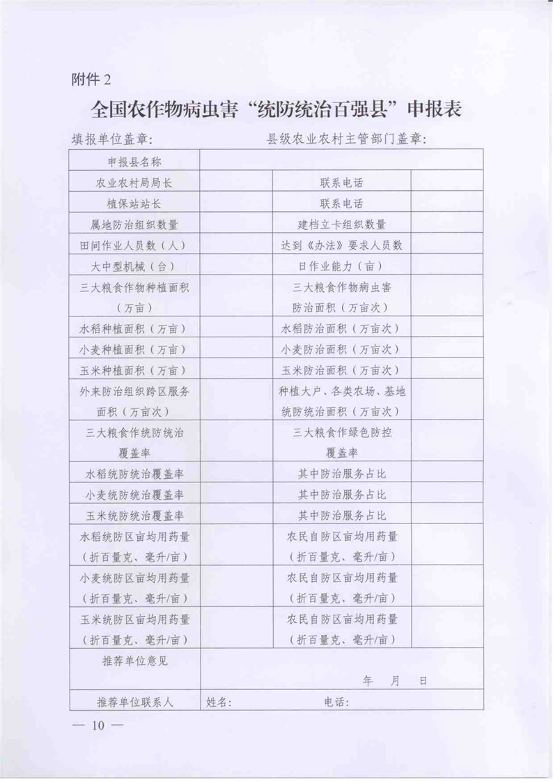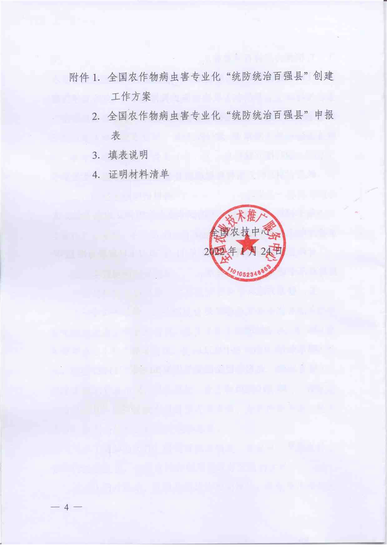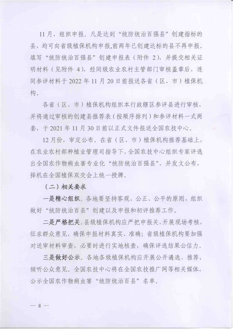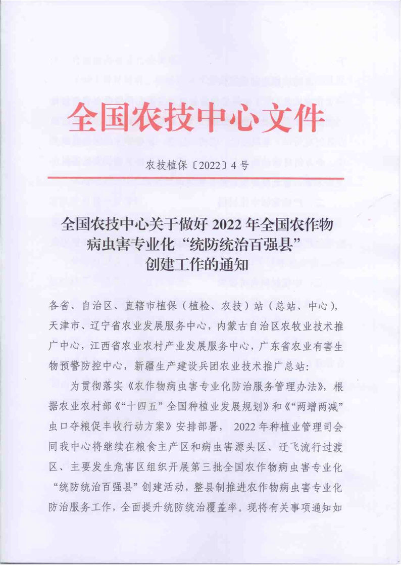 全国农技中心关于做好2022年全国农作物病虫害专业化“统防统治百强县”创建工作的通知