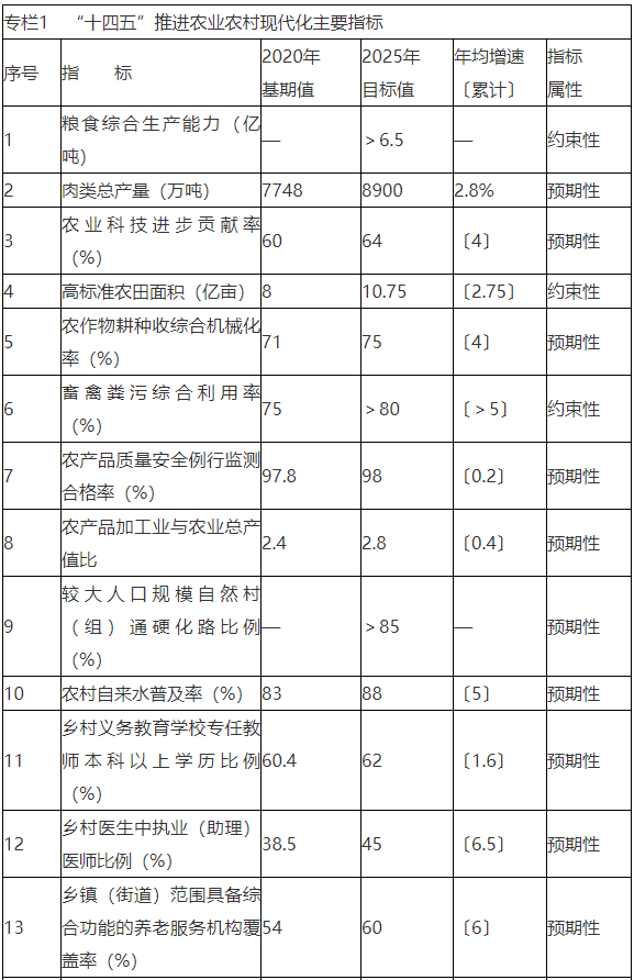 ——农业质量效益和竞争力稳步提高。农业生产结构和区域布局明显优化,物质技术装备条件持续改善,规模化、集约化、标准化、数字化水平进一步提高,绿色优质农产品供给能力明显增强。产业链供应链优化升级,现代乡村产业体系基本形成。