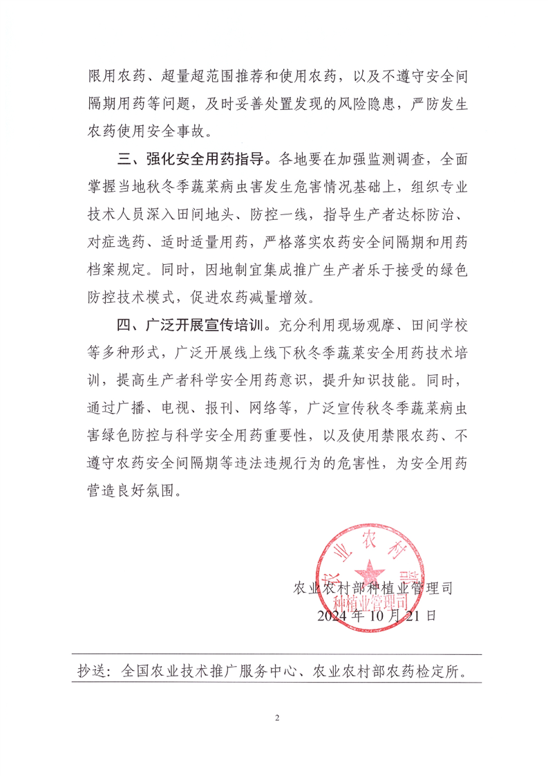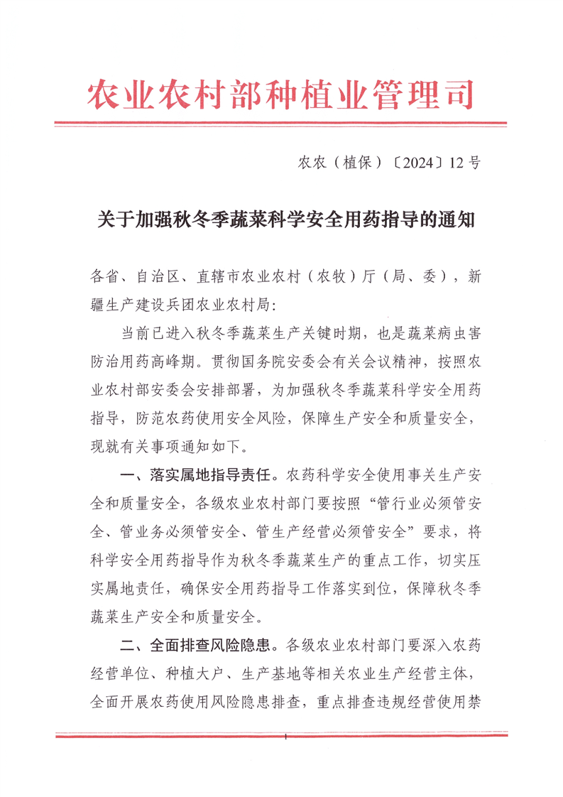 关于加强秋冬季蔬菜科学安全用药指导的通知