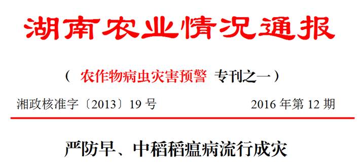 据气象部门预报,我省下阶段(5月下旬末~6月上旬)仍降雨频繁,依旧利于稻瘟病流行。特别是优质稻、超级稻种植区和应急性镉低积累品种种植区,大部分品种抗瘟性差,加之大多数地方是政府采购发放种植,单一品种连片种植面积大,加大了早、中稻稻瘟病流行成灾风险。