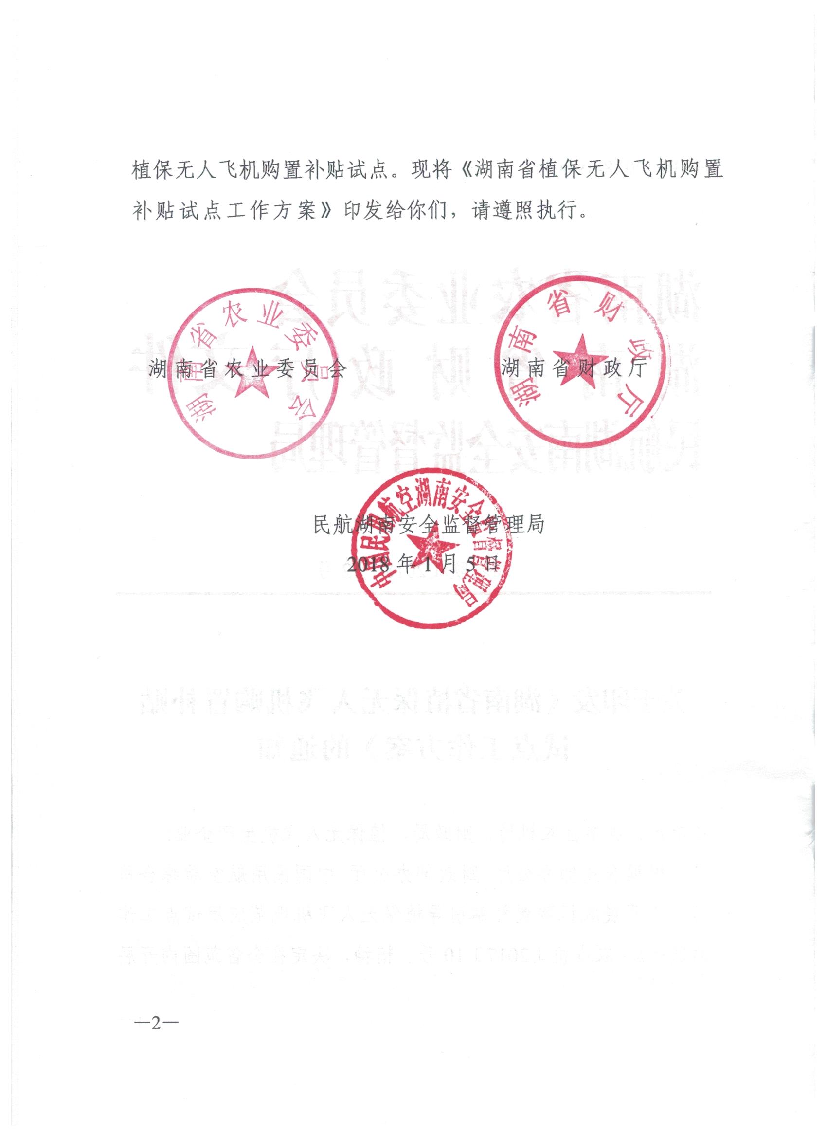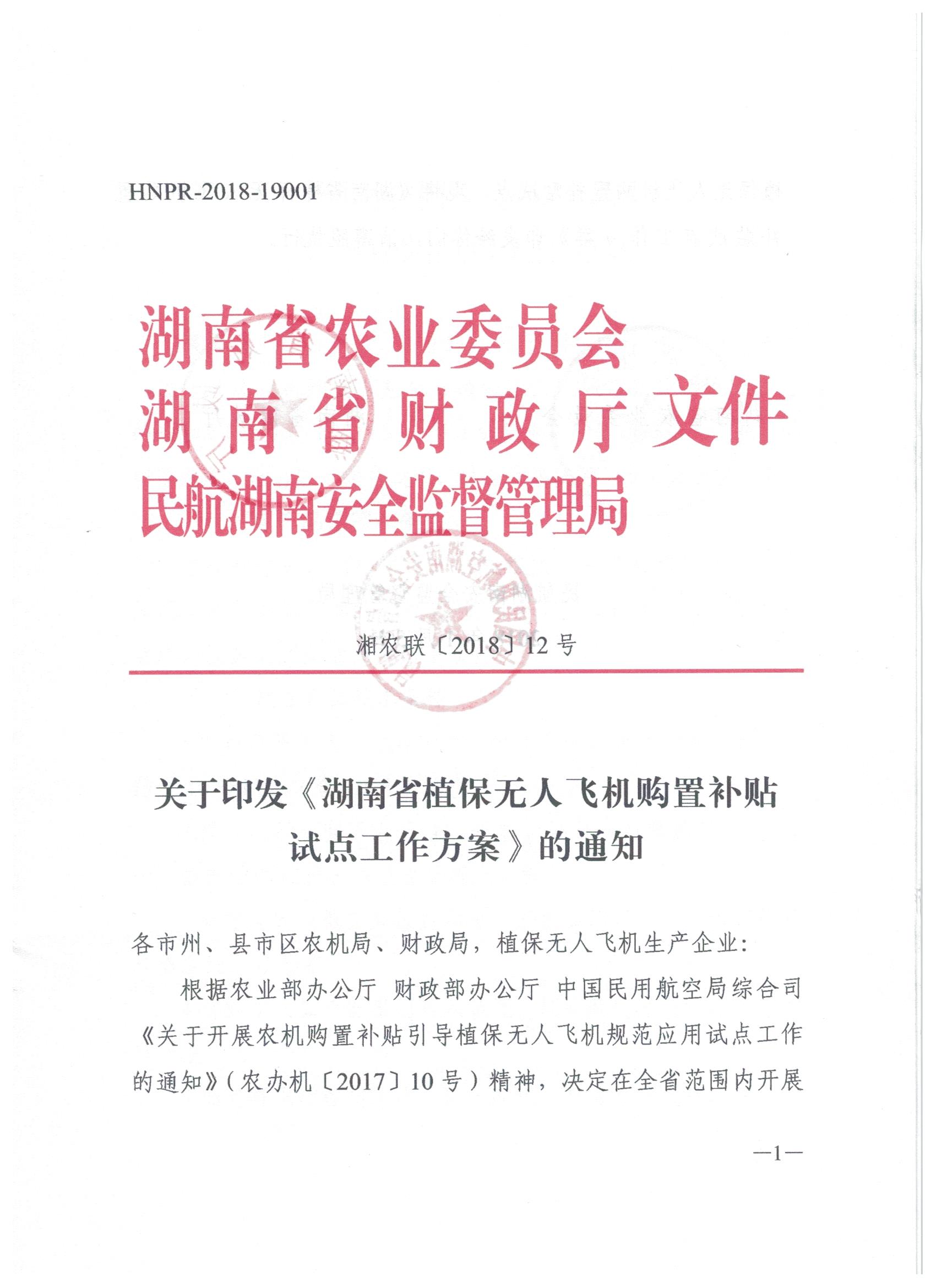 关于印发《湖南省植保无人飞机购置补贴试点工作方案》的通知