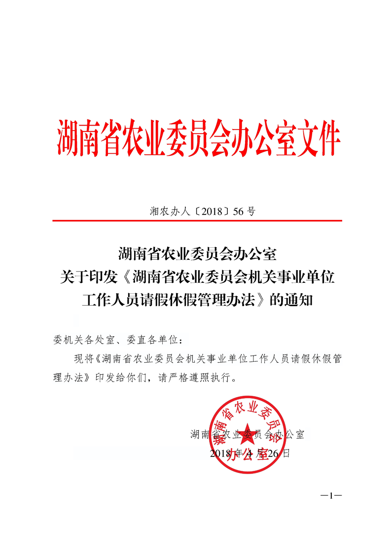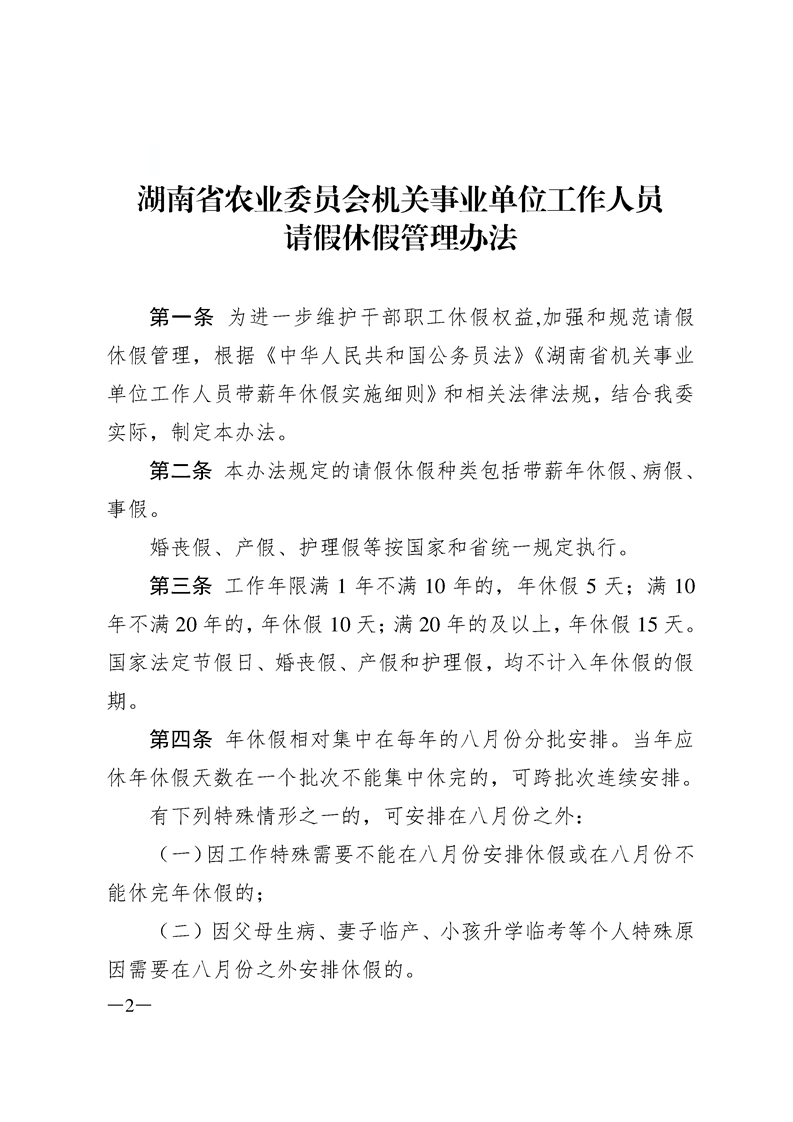 湖南省农业委员会机关事业单位工作人员请假休假管理办法