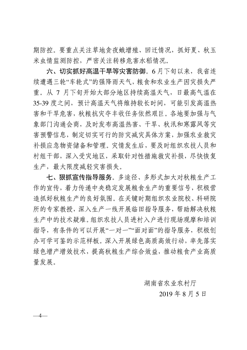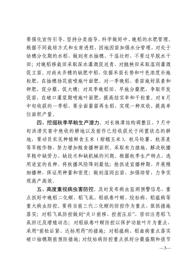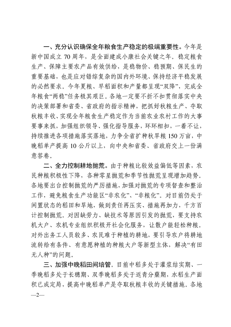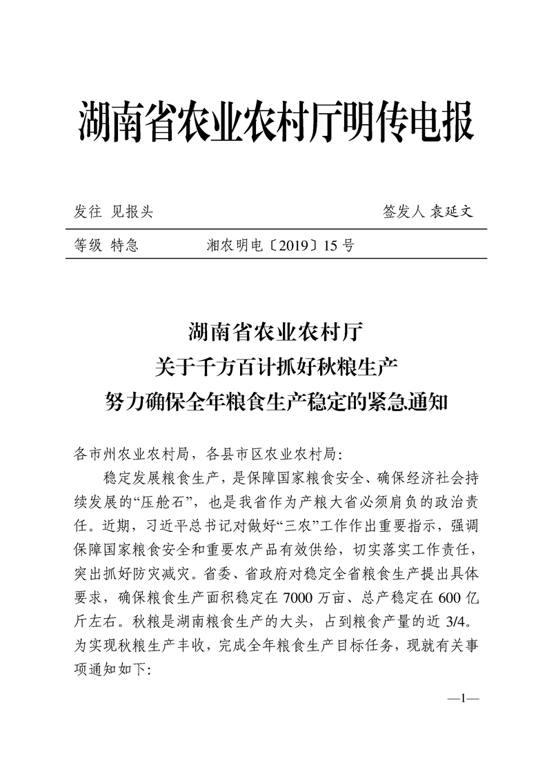 湖南省农业农村厅关于千方百计抓好秋粮生产努力确保全年粮食生产稳定的紧急通知