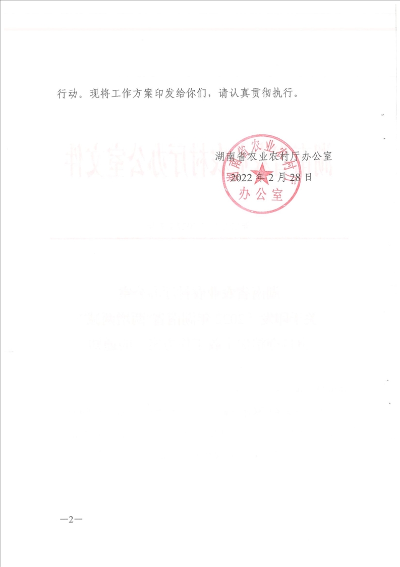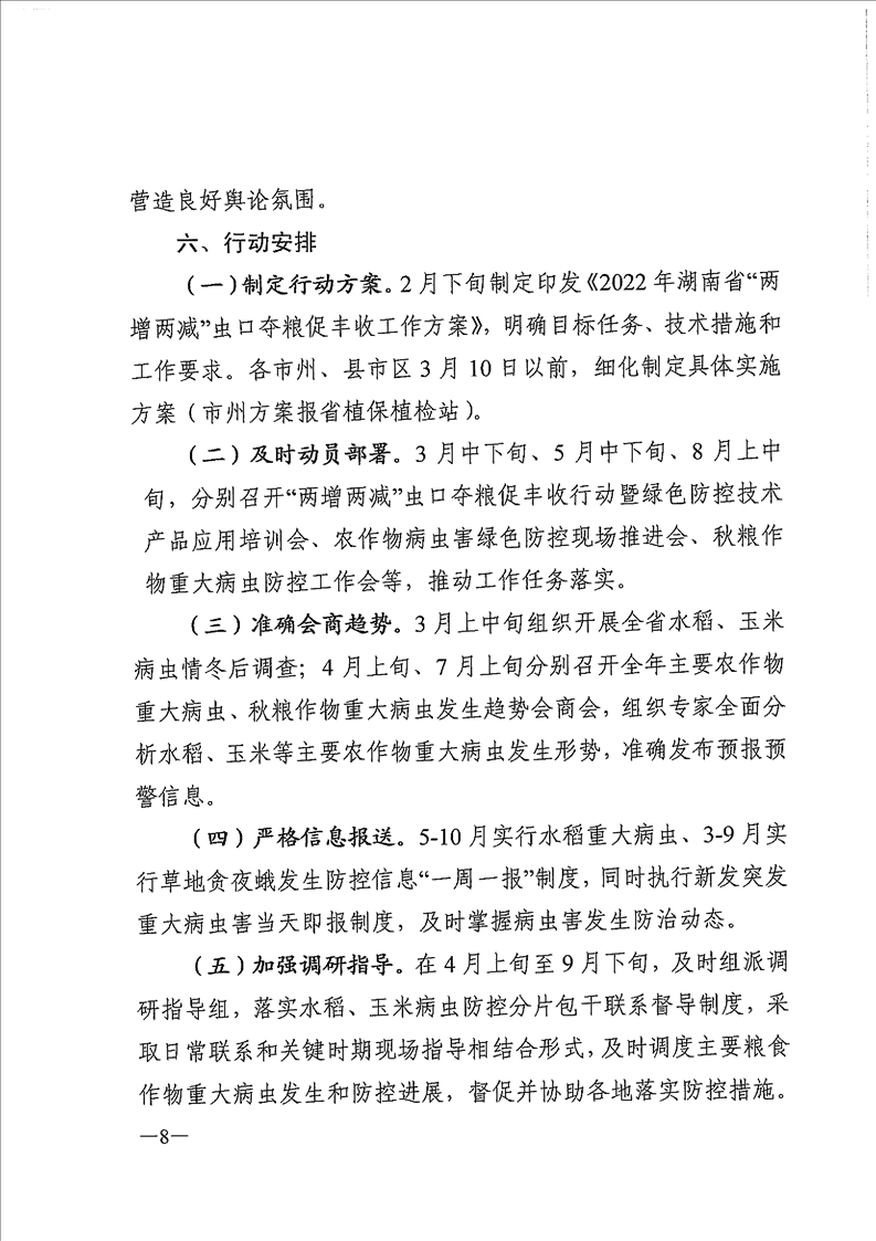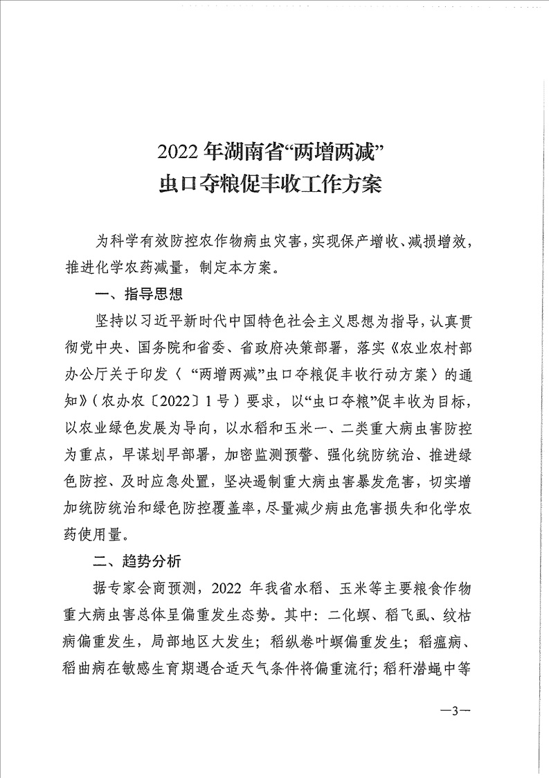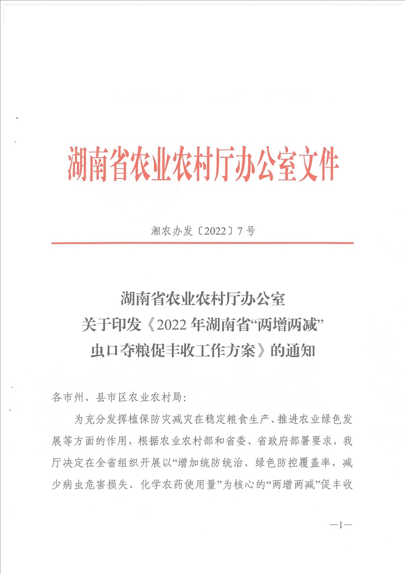 湖南省农业农村厅办公室关于印发《2022年湖南省“两增两减”虫口夺粮促丰收工作方案》的通知