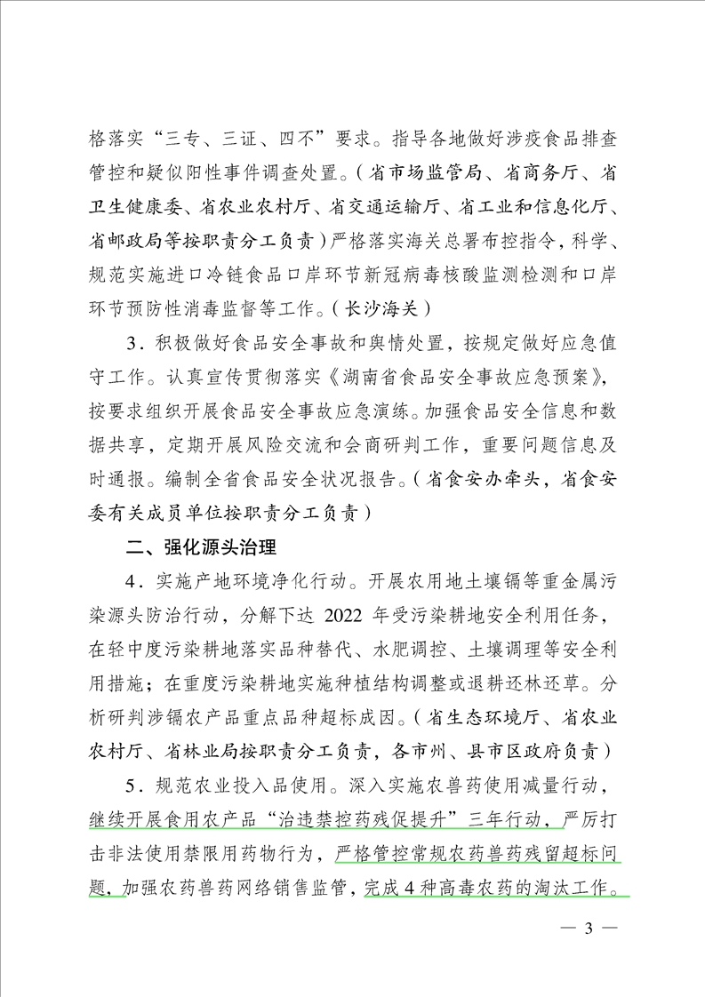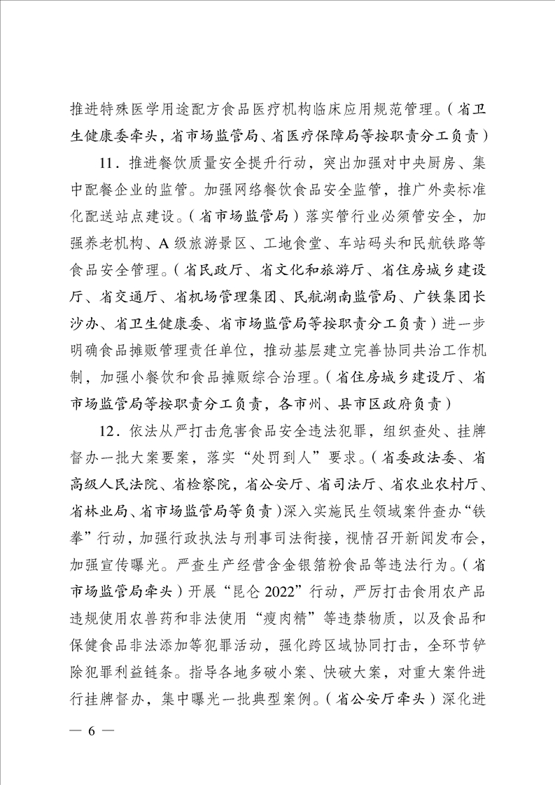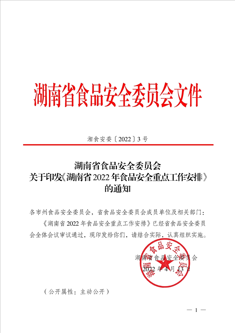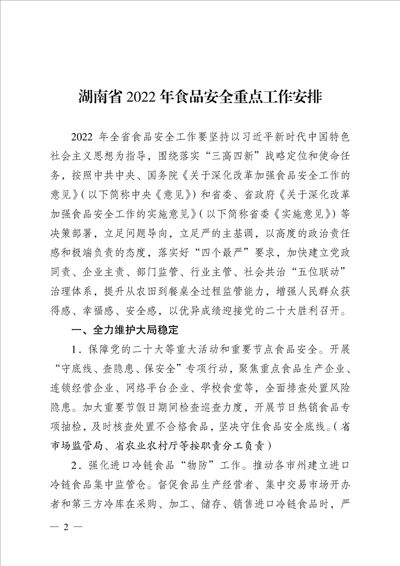 关于印发《湖南省2022年食品安全重点工作安排》的通知