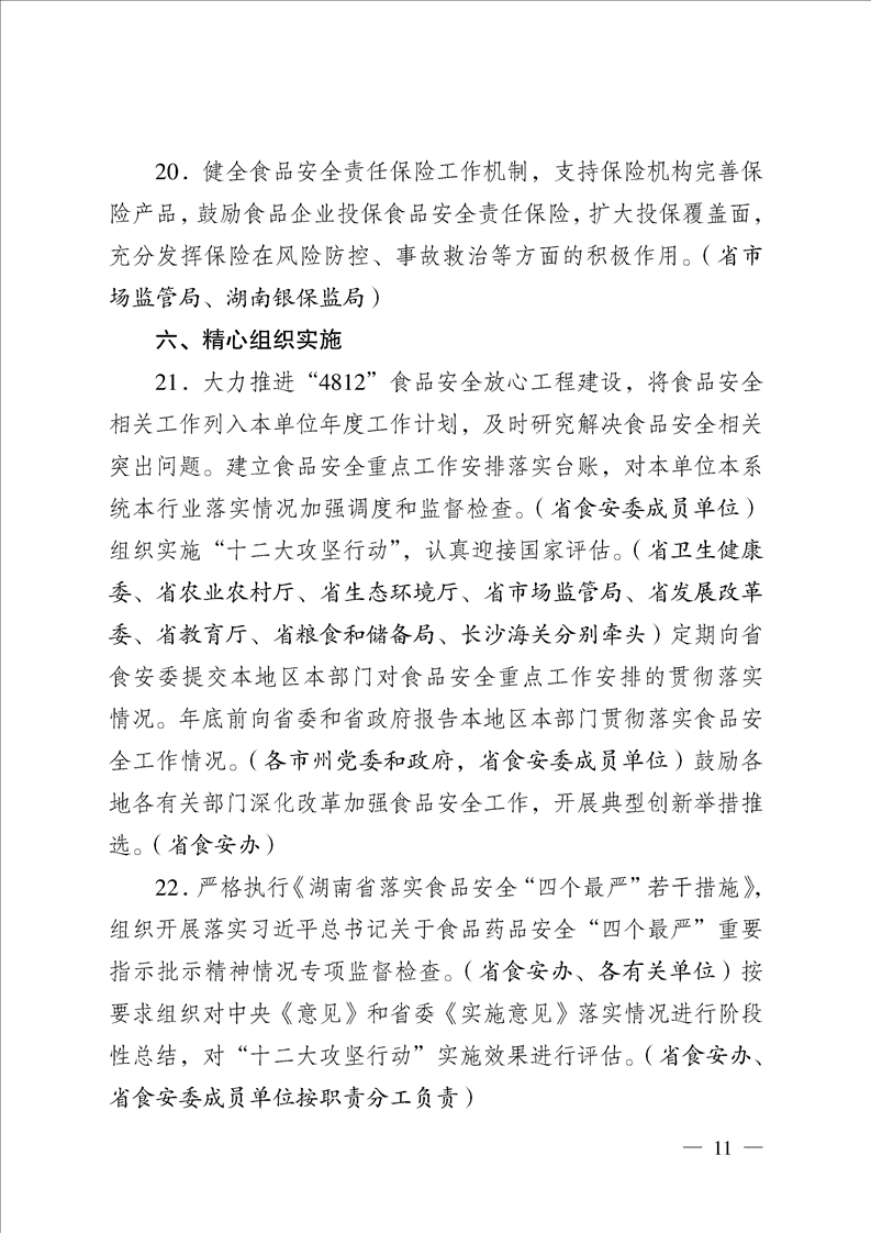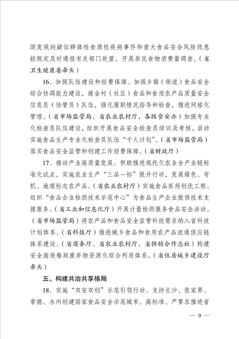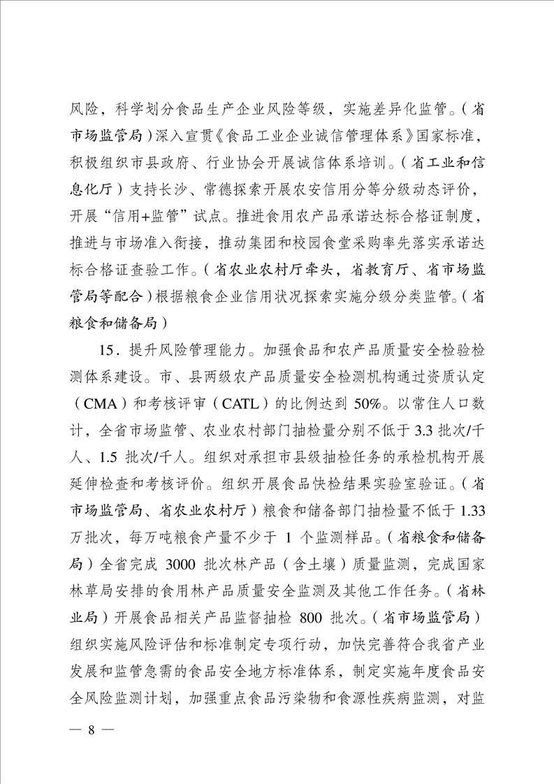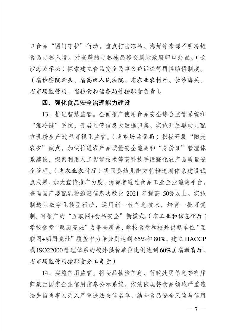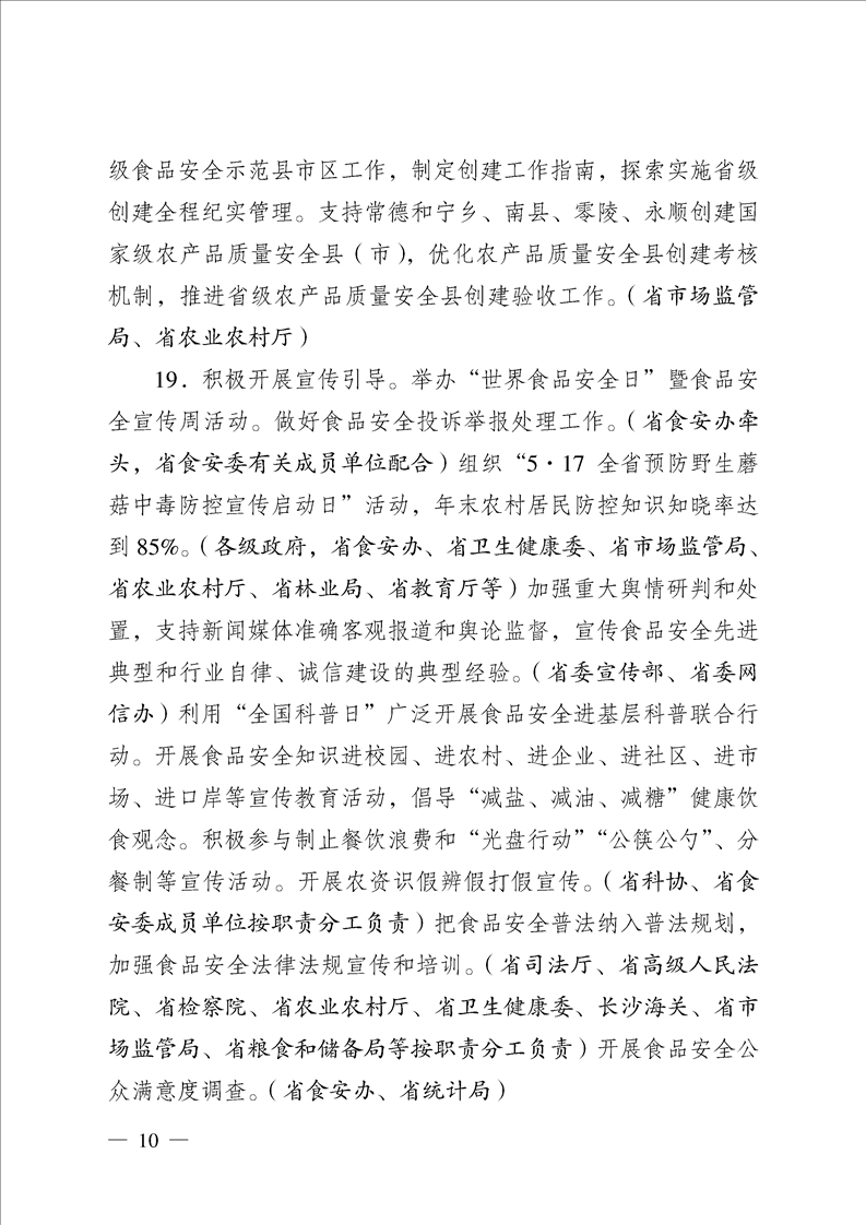 关于印发《湖南省2022年食品安全重点工作安排》的通知