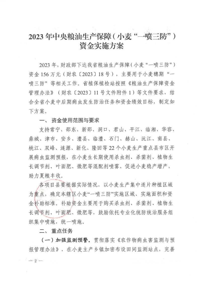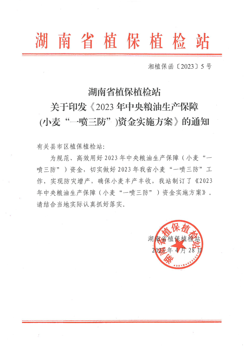 关于印发《2023年中央粮油生产保障(小麦“一喷三防”)资金实施方案》的通知