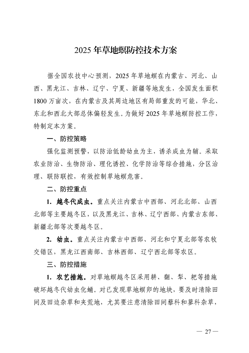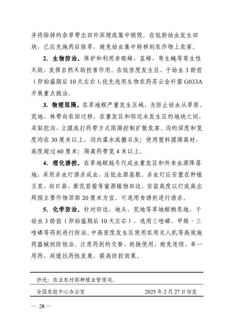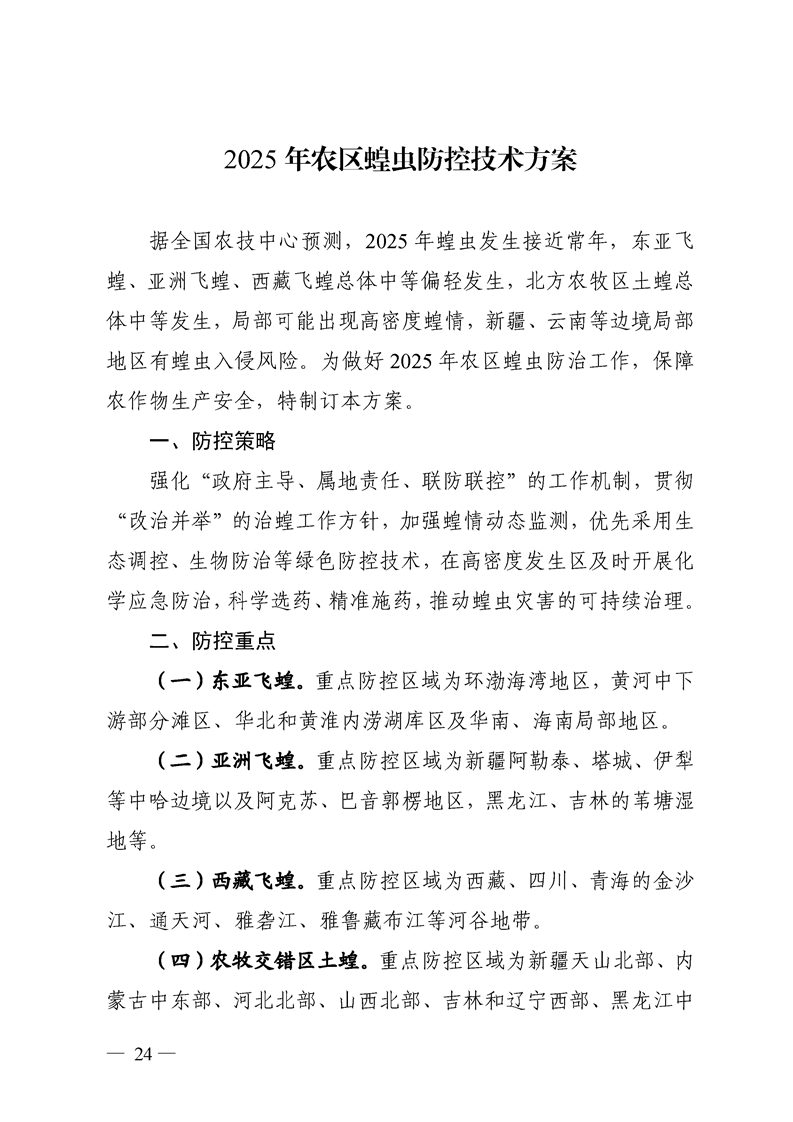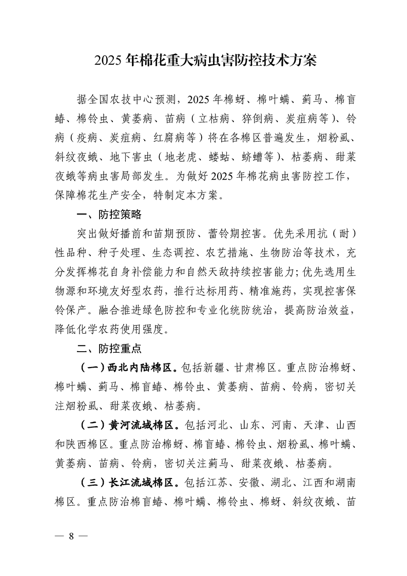 关于转发《全国农技中心关于印发2025年粮食作物重大病虫害防控技术方案的通知》和《全国农技中心关于印发2025年油料经济作物重大病虫害防控技术方案的通知》的通知