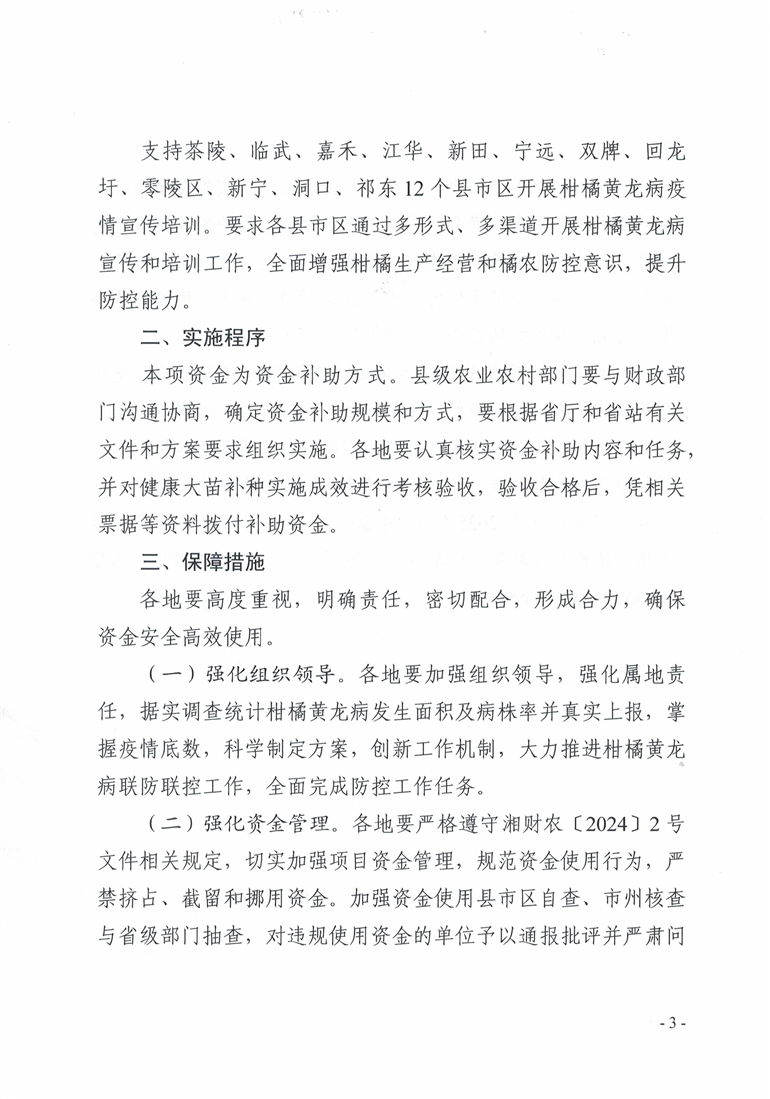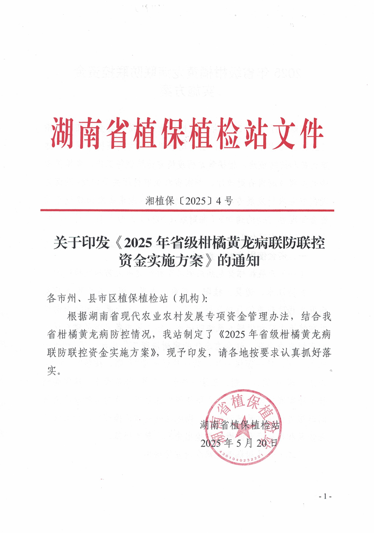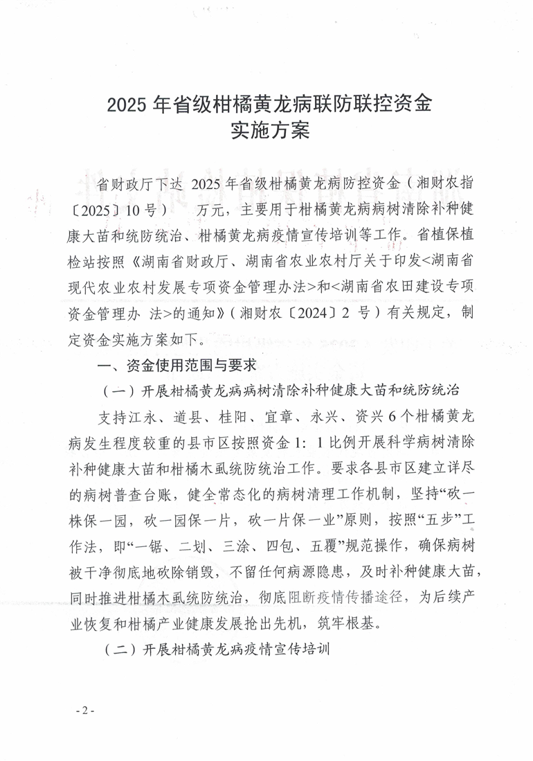 关于印发《2025年省级柑橘黄龙病联防联控资金实施方案》的通知