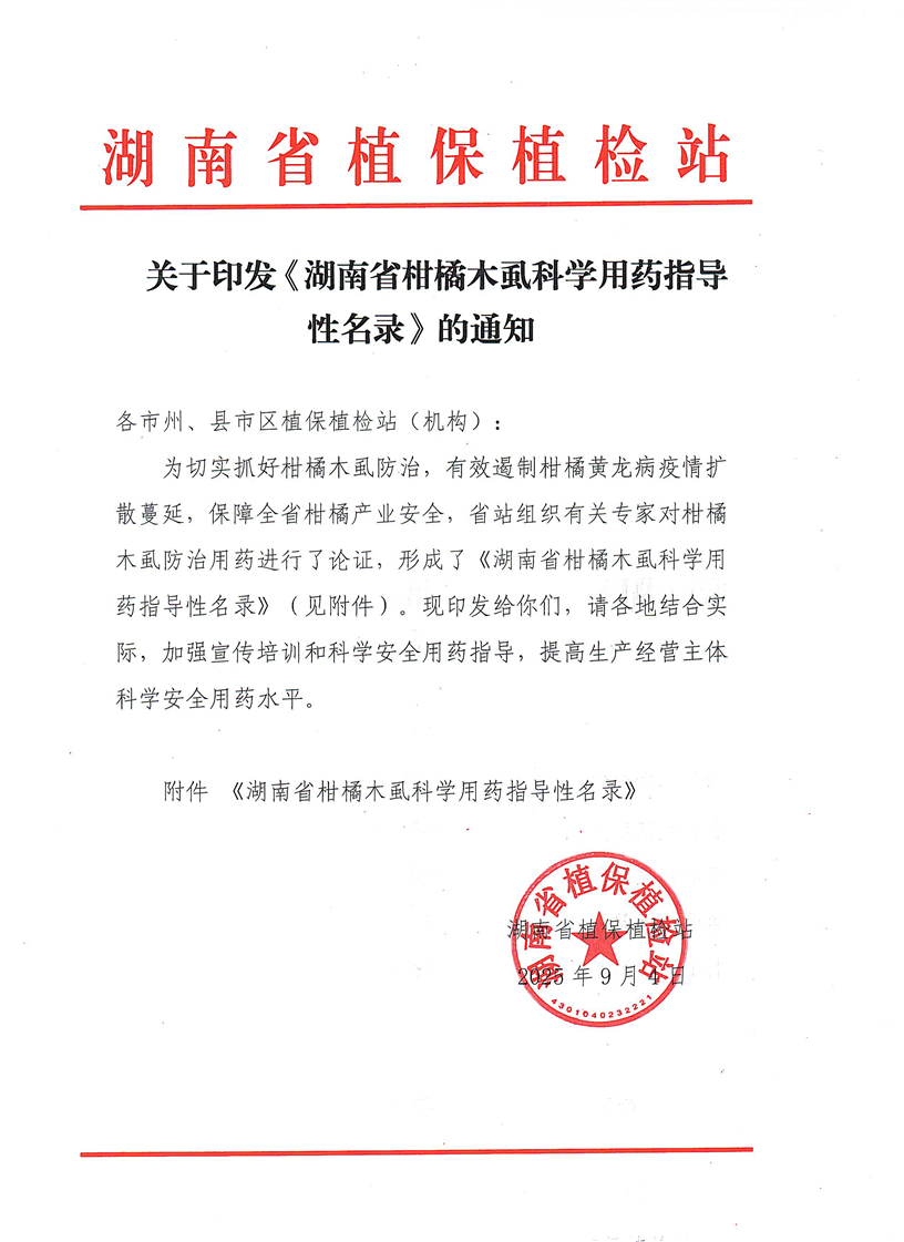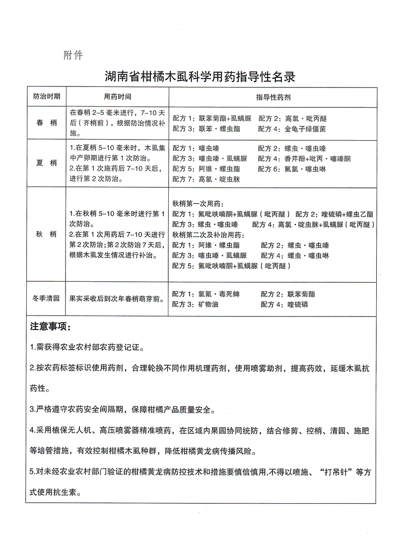 关于印发《湖南省柑橘木虱科学用药指导性名录》的通知