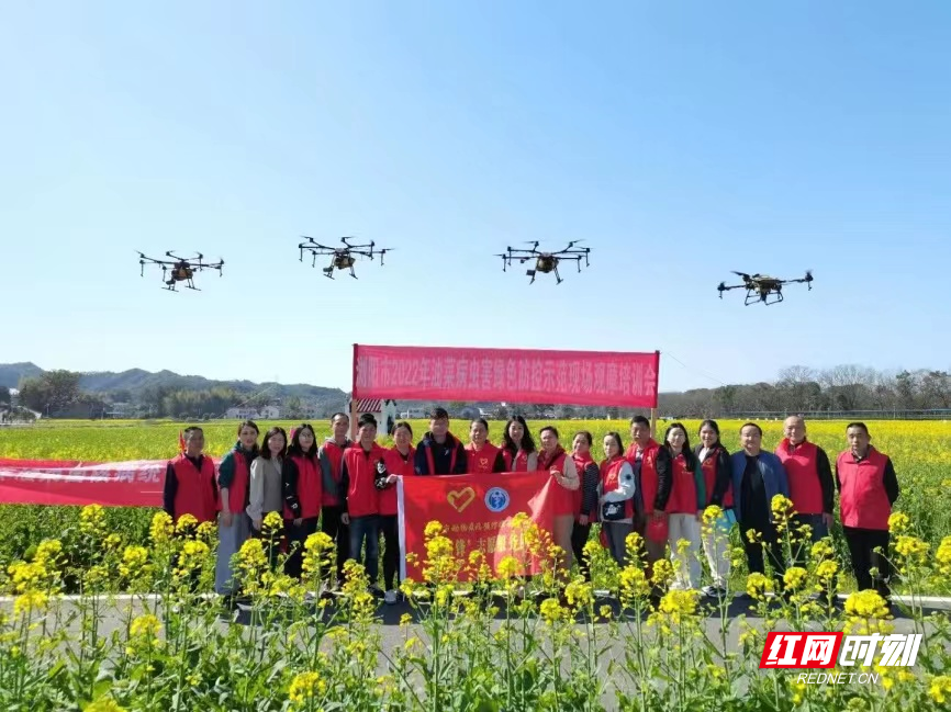 3月9日,由长沙市疫控中心与浏阳市农业发展事务中心共同举办的油菜菌核病统防统治现场观摩会暨农药减量宣传活动在浏阳市达浒镇达兴村火热进行。一台台植保无人机从油菜上方轻轻掠过,飞防工作人员有条不紊对油菜田进行统防统治示范,不到半天就完成了油菜病虫害防治作业。