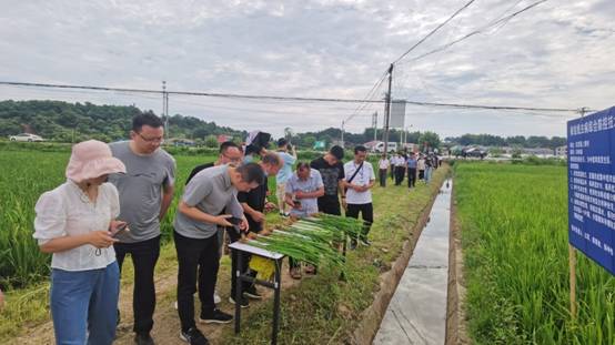 与会人员在平江县安定镇观摩了水稻根结线虫病综合防控现场。湖南农业大学植物保护学院丁中教授就水稻根结线虫病防控技术进行了培训;平江县、醴陵市就相关工作作了交流发言。
