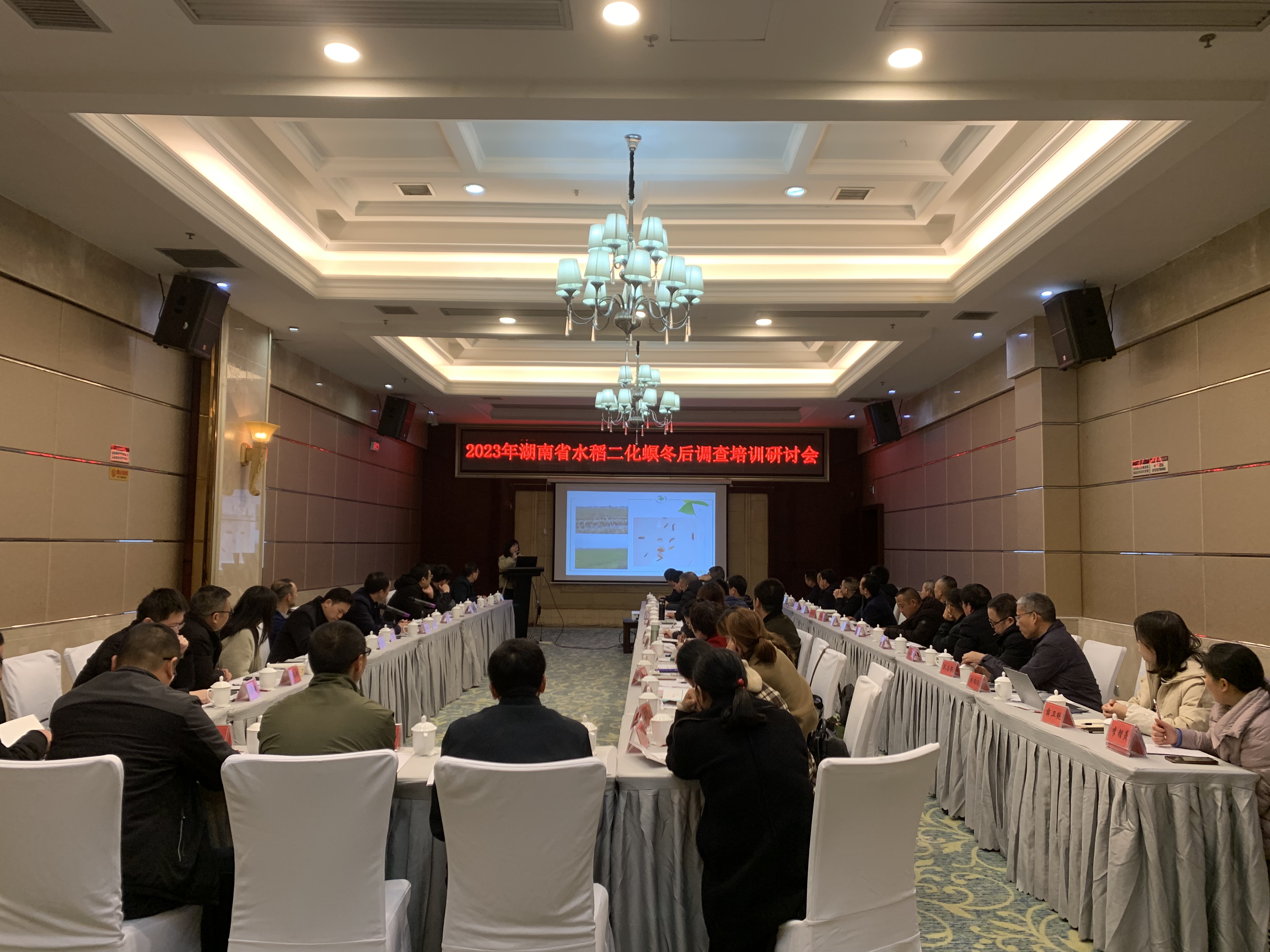 会上,省植保植检站测报专家、赫山区农业农村局植保专家等对水稻螟虫调查监测及防控等进行了授课交流,各县市区代表就水稻二化螟监测预警及防控作了交流研讨。