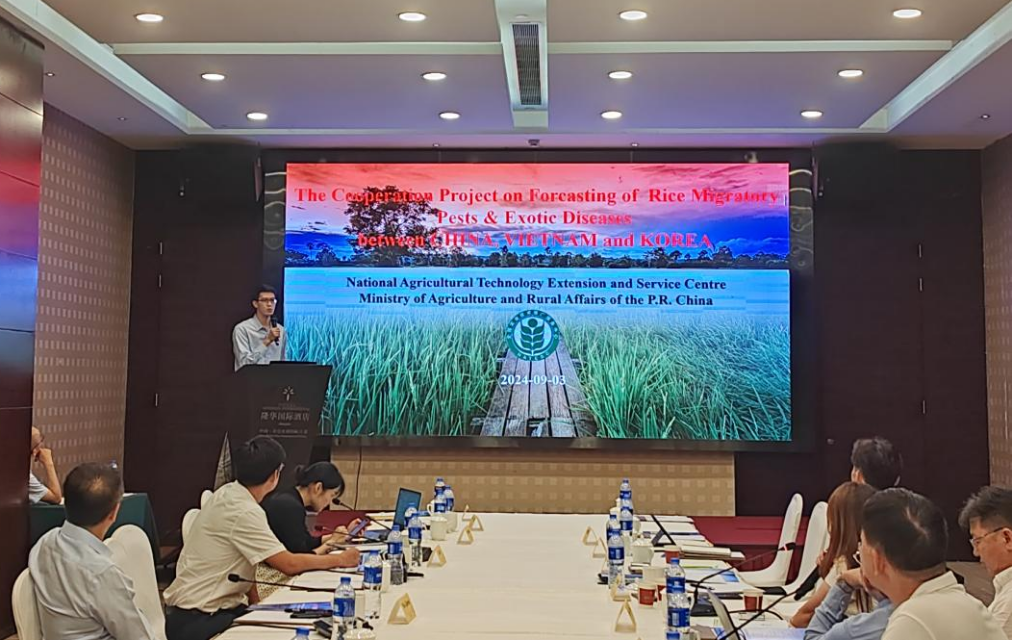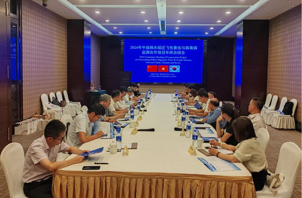 会议期间,中、越、韩三方参会代表就2024年水稻白背飞虱、褐飞虱、稻纵卷叶螟等迁飞性害虫在三国发生实况和下阶段形势作分析报告,对2024年项目工作进展情况进行了总结交流,对2025年项目实施内容进行了协商,并就水稻迁飞性害虫与病毒监测防控技术开展研讨交流。