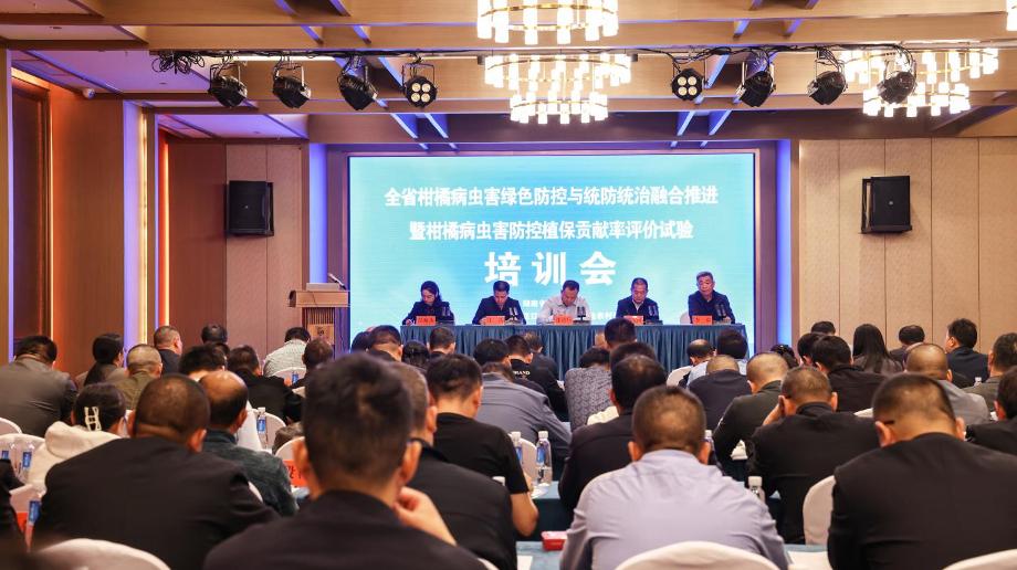 11月8日,湖南省柑橘病虫害绿色防控与统防统治融合推进暨柑橘病虫害防控植保贡献率评价试验观摩培训会在怀化市芷江侗族自治县举行。活动当天,与会专家代表观摩了柑橘绿色防控与统防统治融合示范区和植保贡献率评价试验地,开展了柑橘病虫害绿色防控技术培训,并就今年经济作物保护工作重点与成效以及下阶段和2025年全省经保工作进行了交流和部署。