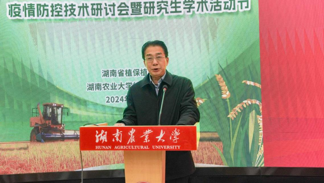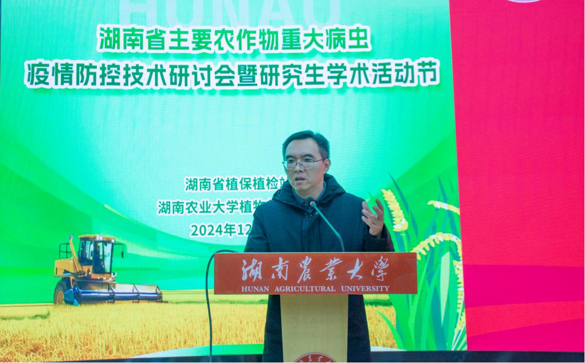12月7日,湖南省农作物重大病虫疫情防控交流研讨会在长沙召开。来自中国农业科学院,湖南、广东、浙江等省份的科研院校专家教授及省植保植检站相关代表共50余人参加会议,湖南农业大学植保学院在读研究生旁听了专家报告。省农业农村厅党组成员、副厅长龚昕出席会议并讲话。湖南农业大学党委副书记陈光辉致辞。中南林业大学副校长周小毛莅临指导。