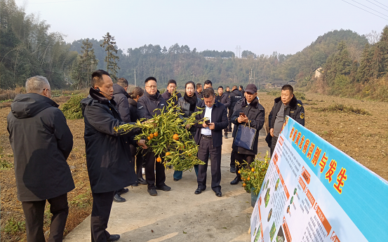 与会代表首先在洪江市黔城镇严家团村进行现场观摩,了解柑橘黄龙病发生状况,识别柑橘黄龙病症状,掌握柑橘黄龙病防控措施。