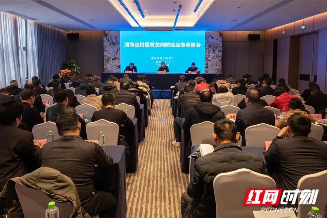 红网时刻新闻2月22日讯(记者 杨怡晴 通讯员 陈嘉轩)2月21日,湖南省柑橘黄龙病防控应急调度会在长沙举行,会上研判了当前全省柑橘黄龙病防控形势,并对柑橘黄龙病疫情防控工作作出部署。湖南省农业农村厅党组成员、副厅长龚昕,厅种植业管理处处长李稳香,湖南省植保植检站站长张政兵出席会议。