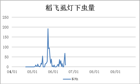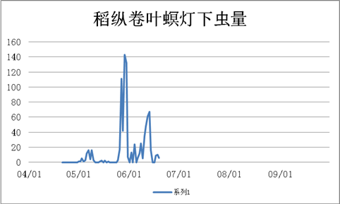 (2)稻纵卷叶螟:5月27日—30日蛾量峰期后,6月11日—13日出现小峰期。今年以来稻纵卷叶螟蛾量为去年同期的221%;6月以来共337头,为去年同期的122%。