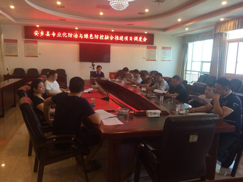 7月26日上午,安乡县农业局召开专业化统防统治与绿色防控融合推进项目调度会。县农业局局长封明忠、分管副局长何秋梅、县植保站全体工作人员以及各专业化统防统治服务组织负责人等参加会议。