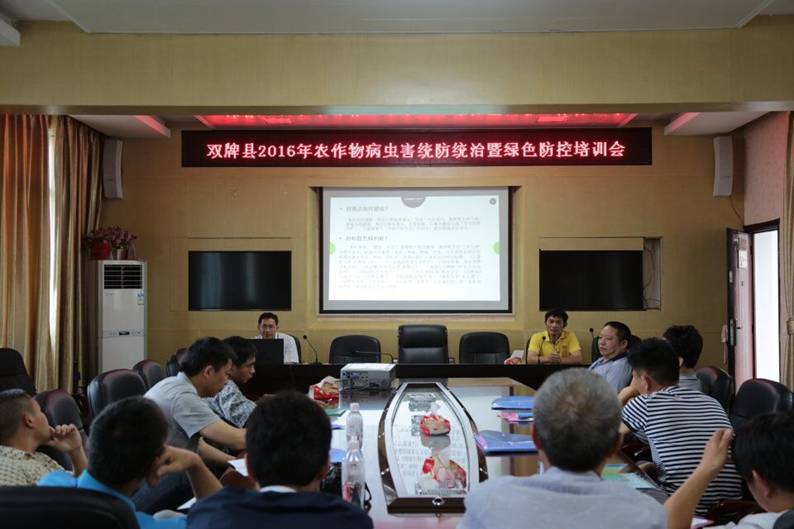 双牌县农业委于6月16— 18日召开全县农作物病虫害统防统治暨绿色防控中期培训会,各服务组织负责人、村级服务站站长、机防飞防队负责人、机防手、种田大户以及各乡镇农技站人员共86人参加培训。