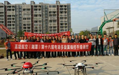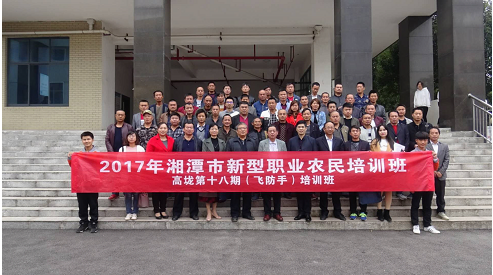 2017年11月6日,由湘潭市农委组织的湘潭市新型职业农民(飞防手)培训班在湘潭生物机电学校正式开班。此次培训以提升飞防手技术为核心,以提高现代化新型职业农民能力素质、推动植保无人机技术应用、培养一批会操作且善管理的新型经营主体为目标,充分利用植保无人机生产企业的技术优势,帮助农民学员提高全程机械化服务水平,推动湘潭市农业产业的转型和现代水稻产业的升级。培训班邀请了高垅航空相关技术专家进行了授课,来自全市的农业种植大户、种植专业合作社与家庭农场负责人等50余人参加了培训,市农委副主任刘新杰、胡志文,科教科科长魏永辉,植保站站长周绍良等出席并致辞。