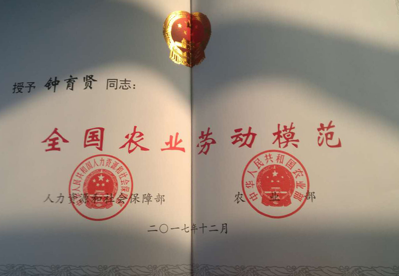 12月28日,在北京召开的中央农村工作会上,益阳市资阳区中正粮食种植病虫害统防统治专业合作社理事长钟育贤被评为全国农业劳动模范,受到习近平总书记、李克强总理、汪洋副总理的亲切接见。
