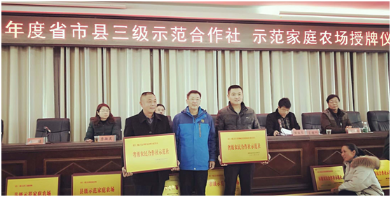 1月30日,桃江县隆重举行2018年度省市县三级示范合作社授牌仪式,桃江谷丰农作物病虫害统防统治专业合作社被省农业农村厅授予省级农民合作社示范社,县农业局局长范尚华出席授牌仪式。