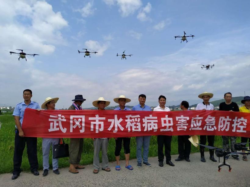 2019年两迁害虫大量迁入,细菌性病害流行发生,更有外来首次入侵生物草地贪夜蛾为害,给全市粮食生产安全带来很大的压力。武冈市农业农村局积极应对,组织辖区内文华植保合作社、峰勇植保合作社8架无人植保机,对山岚大垅万亩早稻两迁害虫及二化螟开展应急防控。