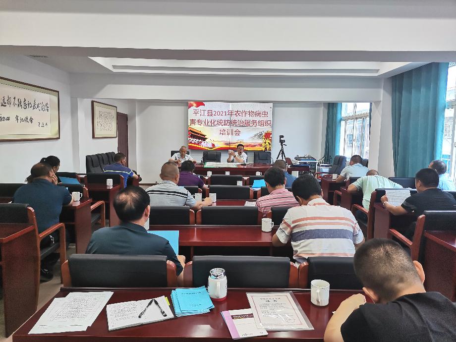 为提高专业化防治组织管理水平和重大病虫害防控能力,增强农业生产安全意识、持续推进农药减量增效工作,平江县农业农村局植保植检站组织召开2021年农作物病虫害专业化统防统治服务组织培训会,对辖区内统防统治服务组织进行培训。参加培训会的有县农业农村局副局长谭启明、安全办主任刘犟南、植保植检站全体专技人员以及田园牧歌、利农等专业化统防统治服务组织。