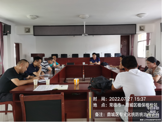 7月27日,鼎城区组织经省植保植检站授权的七家专业化统防统治服务组织召开座谈会,部署安排中晚稻病虫防治工作。