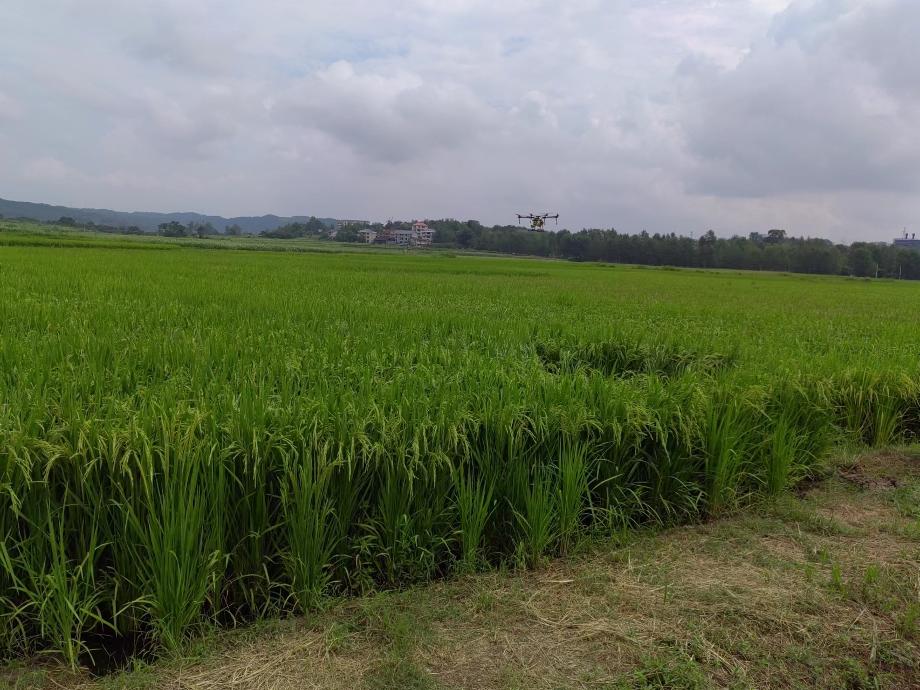 “杨老板,今天早上我看了我的中稻田,发现田中间有部分禾枯萎倒伏,象火烧一样,应该是稻飞虱危害造成的,请你们的无人机帮我杀下虫。”“好的,马上就去”。连山乡建设村2组张秀增匆匆来到宝丰农资服务部连山统防统治村级服务站,接着又有漩水、建设、连山、大坪、六黄等村农户找到服务站,要求尽块帮他们杀虫。服务站站长杨水长将无人机以及配好的药液装车来到了田间,不到2分钟功夫就将张秀增1亩多的稻田喷洒完毕,紧接着又去别的田块喷洒。