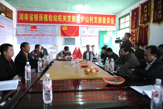 下午,两个支部的部分党员一起召开座谈会。首先,炉山村党支部书记王学军同志介绍了自去年我站与炉山村开展机关支部联基层活动以来,炉山村在文化建设、基础设施建设、产业发展以及招商引资等方面取得的成绩。王书记发言后,各位基层党员踊跃发言,纷纷就该村的发展前景、存在的各种困难以及对上级领导的请求畅所欲言。我支部党员对基层党员的发言,耐心倾听、细致地解答,对他们遇到的困难、问题及提出的建议进行了解、记录,为下一步的帮扶计划打好基础。此次,我站又捐赠一批农药物资,支持该村农业生产。座谈会上,我站植保专家、副站长唐会联同志还根据炉山村农业资源和种植结构特点,就作物品种布局、栽培技术、防灾减灾、病虫防治以及农作物专业化统防统治工作做了详细讲解,给基层党员上了一场生动的农业专业技术课,得到与会同志的一致好评。