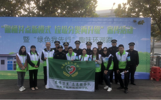 11月18日,省植保植检站志愿队在副站长、工会主席彭晖的率领下,在长沙市后湖公园参与了由长沙市岳麓区城管执法大队主办的“撤桶并点新模式 垃圾分类再升级”宣传活动,向市民宣传垃圾分类知识,为促进城市与环境健康永续发展贡献一份力量。