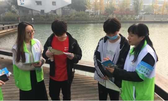 初冬的长沙阳光明媚,暖意融融,公园内游客熙熙攘攘,身着志愿服的省植保站志愿服务队格外引人注目。在此次宣传活动中,志愿者们不仅以市民身份参与到趣味环湖跑活动中,在互动活动体验的过程中,学习自10月1日起开始施行的《长沙市生活垃圾管理条例》和垃圾分类知识;同时,志愿者们还化身宣传员,热情地向来往的市民游客分发宣传单和小册子,介绍新施行的条例和正确投放方式,并呼吁大家用实际行动参与到垃圾分类全民行动中来,正确分类投放垃圾,共同维护市容环境。