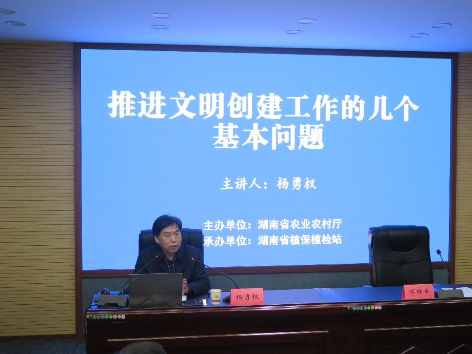 3月8日,省农业农村厅邀请省直机关工委一级巡视员杨勇权以《推进文明创建工作的几个基本问题》为主题作了2021年第一期道德讲堂专题讲座。厅机关党委专职副书记邓辉平主持讲座,厅西院13个单位的干部职工参加。此次道德讲堂由省农业农村厅文明办主办、省植保植检站承办。