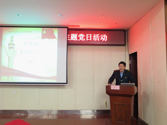 支委刘鹏飞以《学新党章 做合格党员》为题上了一堂精彩的党课。他详细解读了十九大新修订的党章,并指出做新时代合格党员,要做到四个“强化”,把准三个“关系”: 即强化政治规矩、行为规矩、组织规矩和生活规矩,正确认识和处理组织入党与思想入党、对上负责与对下负责及自律与他律的关系。